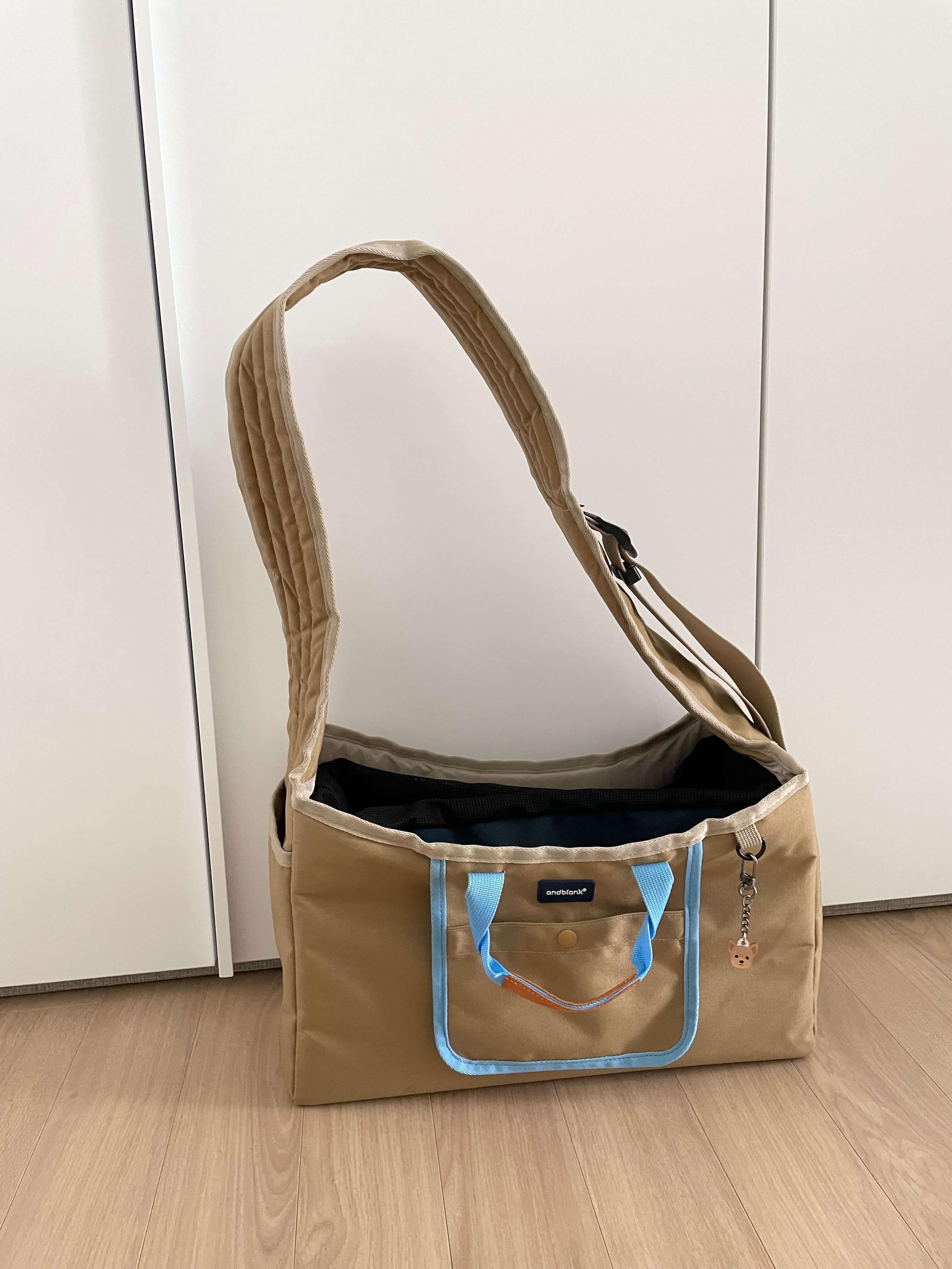 반려동물과 반려인 모두가 편안한 스퀘어 슬링백, 앤블랭크 스퀘어 슬링백은 바닥면이 사각으로 되어 반려동물 이동시 더욱 안정감 있게 이동할 수 있습니다. 또한 메시백을 따로 구입 할 수 있어 답답한 것을 싫어하거나 대중교통을 이용하지 않는 분들에게 선택할 수 있게 되어있어 좋더라구요. 제품은 670g의 가벼운 무게를 하고 있습니다. 코듀라 원단을 사용했는데요, 코듀라 원단은 튼튼하지만 무게는 겨우 670g밖에 되지 않습니다. 때문에 강아지 무게에 가방무게에 어깨에 드는 부담을 줄여줄 수 있습니다. 안정감 있는 사각 패턴과 2중 쿠션 구성으로 바닥 안쪽 하드판이 내장되어 있으며, 가방 안쪽에도 쿠션이 2중으로 되어있어, 반려동물이 안정감있고 편하게 이동 할 수 있습니다. 스퀘어 슬링백에 딱 맞는 메시백. 앤블랭크 스퀘어 슬링백 전용 메시백은 슬링백과 같은 형태로 안쪽 안전줄까지 디테일이 동일 합니다. 이는 추가 구매 하는 것이기 때문에 필요없는 분들은 굳이 구매 하지 않으셔도 될 것 같아요. 저는 차가 없이 대중교통을 이용해서 대중교통을 이용할 때는 강아지가 완전히 가방 안에 들어가있는 형태여야 해서 추가 구매 했습니다. 또한 비행기를 탈 때도 사용할 수 있어 구입했네요. 베지터블 래더 토트 손잡이는 잠시 위치를 옮길때 필요한 손잡이 입니다. 베지터블 가죽으로 마감하여서 편안함과 고급스러움을 느낄 수 있습니다. 어깨 쿠션은 자유로운 길이 조절이 가능하며 스트랩 홀더가 함게 제공 됩니다. 스펀지가 들어있는 넓은 어깨패드는 어깨의 무리를 최소화 해줍니다. 가방에 쓰인 코듀라 원단은 가방 면보다 10배, 폴리에스테르보다 3배 강하고 가볍다고 하네요. 더불어 저는 오염도 잘 되지 않는 것 같아서 관리하기 쉬웠습니다. 제품은 원단과 형태가 손상될 수 잇으니 세탁은 가급적 피하는게 좋고 중성세제와 부드러운 솔을 사용해서 오염된 부분만 가볍게 닦아주는게 좋습니다. 가방이 많이 오염되었을 경우 가방 전문 세탁업체에 맡기는게 좋다네요. 저희 강아지는 3kg, 4kg 인데 가방은 8kg 이내의 반려견이 사용하는 것을 권유하고 있습니다. 밑바닥 처짐은 반려견의 몸무게에 따라 다를 수 잇지만, pvc 소재의 하드한 밑판과 2중 쿠션으로 밑바닥 처짐을 최소화 하였습니다. 강아지가 나이가 많거나 안고 다니기 위해 슬링백을 찾으신다면 앤블랭크 슬링백을 추천 드리고 싶네요.