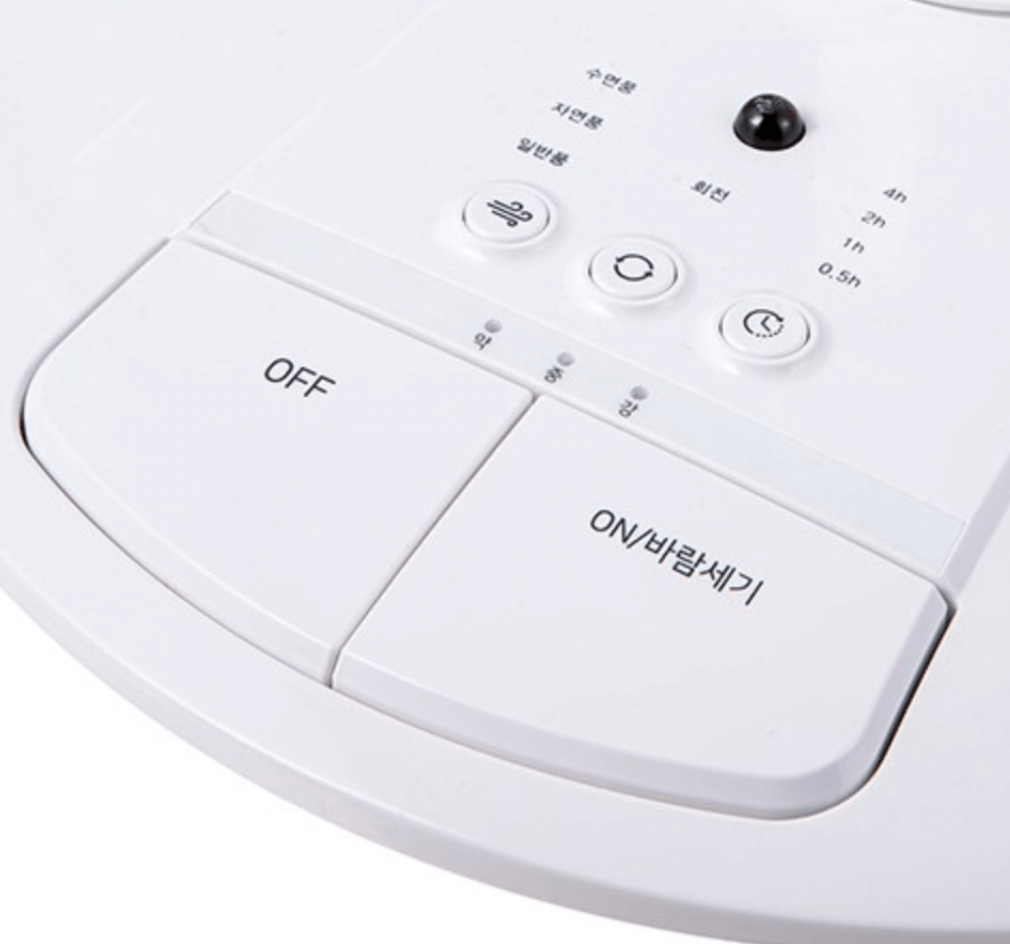 미니멀한 디자인의 리모컨은 선풍기와 거리가 멀리 떨어져 있어도 직접 선풍기에 가까이가서 작동해야 하는 불편함을 덜어주며 간편하게 원거리에서도 선풍기를 사용자가 원하는 방식으로 조절이 가능하게 합니다. 리모컨 역시 화이트 톤의 컬러감으로 통일 했으며 전원 버튼과 바람선택, 시간, 회전 기능을 조절할수 있는 기능이 탑재되어 있습니다. 남녀노소 누구나 쉽게 조절이 가능한 설계가 장점입니다.다기능 조작부는 선풍기 자체에 탑재되어 있는데요 실속있는 기능으로만 구성되어 있어서 복잡한 사용방법이 제거 되어있어서 조금더 편리하고 사용자가 원하는 순기능만 탑재되었습니다. 최대 7.5시간 까지 예약이 가능하며 30분 간격으로 나뉘어진 타이머가 설정되어 있습니다.