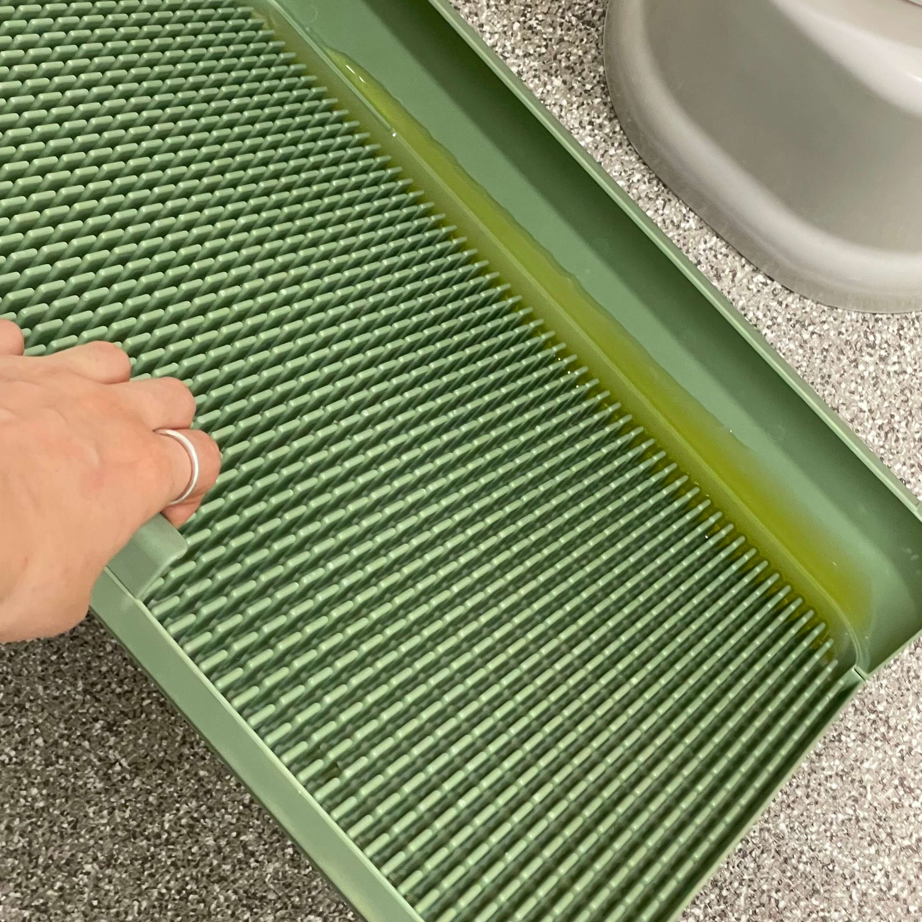 독톡은 배변패드가 필요없는 배변판 입니다. 평소에 배변패드 쓰레기와 냄새로 고생하는 분들, 발톱걸림 트라우마가 있는 반려인, 매달 드는 배변패드 값이 부담스러운 반려인, 이불에 쉬하는 댕댕이의 이불 빨래에 지친 반려인 분들 모두를 위해 만들었다고 하네요. 독톡 세움 배변판은 이러한 고민을 덜어줄 수 있는데요, 아이들이 이불에 실수를 하는 이유는 발바닥 촉감으로 공간을 구별하는 강아지들에게 배변패드는 이불과 구분하기 힘들기 때문이라고 합니다. 독톡에는 특수 돌기가 있어서 아이들이 배변판이라는 것을 인식할 수 있게 도와줍니다. 아이가 배변을 하면 배변판에 달린 손잡이를 잡고 가볍게 세워들어서 배변을 배변받이에 모아주세요. 그다음 오물은 변기에 부어서 물을 내리면 끝입니다. 다음 더러워진 면을 샤워기로 씻어 주면 쓰레기와 냄새 걱정없이 아이들 배변판을 처리할 수 있답니다. 가끔 아이들 응가가 돌기 사이에 끼는 경우도 있는데 이때는 청소솔로 닦아주면 쉽게 쓸어 내려간답니다. 독톡 배변판은 수많은 돌기가 소변이 튀지 않게 막아주며, 돌기 아래 많은 양이 수용 가능해 강아지 발바닥에 소변이 묻지 않는다고 합니다. 돌기는 둥글고 안정적인 표면처리로 아프지 않고, 바닥과 일체인 돌기는 흔들림이 없으며, 그물이 없어 C자로 자라는 발톱이 걸리지 않습니다. 저희 강아지도 거부감 없이 아주 잘 사용 하고 있습니다. 배변판은 색상도 화이트, 실버, 핑크, 블랙이 있는데요. 아무래도 소변의 색이나 아이들 변 색을 항상 체크 하기 위해서는 너무 짙은 색은 피하는게 좋을 것 같아요. 디자인도 너무 심플해서 어디 두어도 배변판 같지 않은 느낌이랄까요.